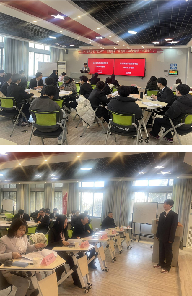2026年1月8日下午,湖北城市建设职业技术学院与中建东方装饰有限公司联合举办的“现代学徒制班学生认知实习答辩会”在该校A102教室顺利举行。湖北城市建设职业技术学院教务处处长岳晓瑞、城市更新学院院长范菊雨、副院长刘卓珺,中建东方装饰有限公司人力资源部经理赵亮正、武汉分公司人力资源部经理朱筱姝等出席活动;建筑装饰系系主任郭婷婷主持会议,骨干教师吴美齐、班主任马良及建装2402班全体学生全程参与。