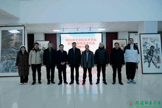 1月14日上午,阿坝师范学院退休教师、阿坝师范学院首届美术专业毕业生何光伟教授向学校捐赠美术作品捐赠仪式在美术学院举行。学校党委副书记、校长向武代表学校接受捐赠,并向何光伟老师心系母校、支持教育事业的无私奉献表示衷心感谢。